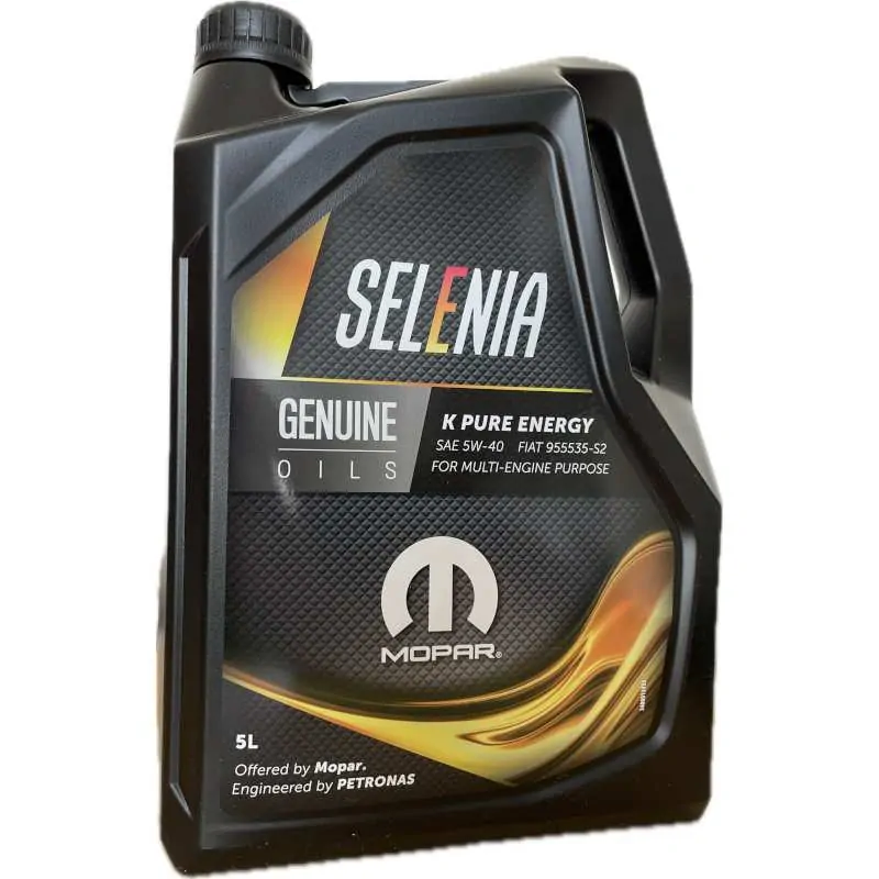 Doporučený motorový olej pro vozidla značek Fiat a Lancia s novou generací benzinových motorů. Plně syntetický olej specifikace ACEA C3 je vyvinutý s ohledem na ochranu drahého katalyzátoru, který díky vlastnostem motorového oleje Selenia K Pure Energy déle vykonává svou práci.